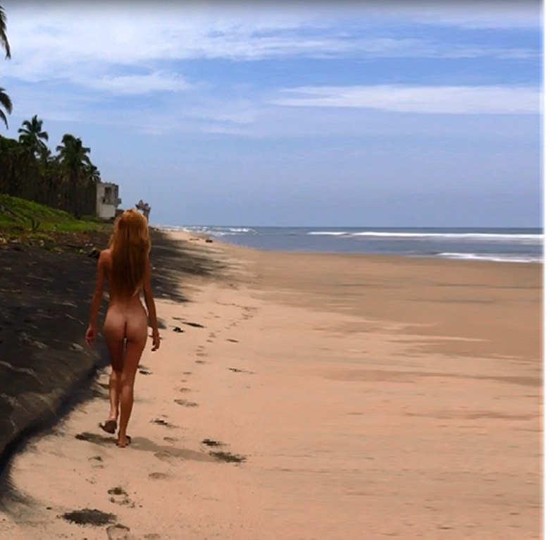 Naked, the super sexy Sydney impresses us with her gorgeous curves: a perfect beach body! But this blonde beauty feels so good even with her cute little beachy pubic hair that she just wants to show it off. Now she feels great, naked, horny, and free as a bird down here, with no one watching her... Except you... But she wants you to watch. Watch her stroll along the beach without clothes, showing off her sexy ass, her slender figure, and her sensual curves. The beautiful girl is posing just for you. Come closer, she won't bite. Watch as she turns around and offers you her open ass, her shaved pussy between her slim thighs: a gift for you.